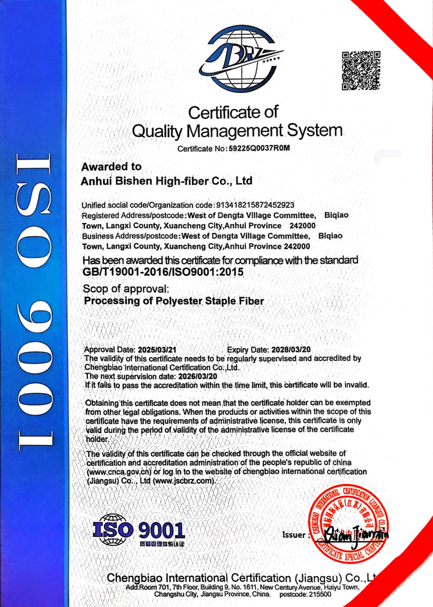 เรามีระบบการจัดการคุณภาพที่สมบูรณ์และทางวิทยาศาสตร์ประสบการณ์การส่งออกที่หลากหลายและความเร็วในการผลิตที่มีประสิทธิภาพช่วยให้เราสามารถผลิตเส้นใยหลักโพลีเอสเตอร์ในข้อกำหนดและสีต่างๆ ปัจจุบันเรามี 4 สายการผลิตที่มีกำลังการผลิตต่อปีของเส้นใยหลักโพลีเอสเตอร์ 48,000 ตัน นอกจากตลาดในประเทศแล้ว บริษัท ส่วนใหญ่ส่งออกไปยังกว่า 20 ประเทศรวมถึงยุโรปอียิปต์อิตาลีเอเชียตะวันออกเฉียงใต้และตะวันออกกลาง